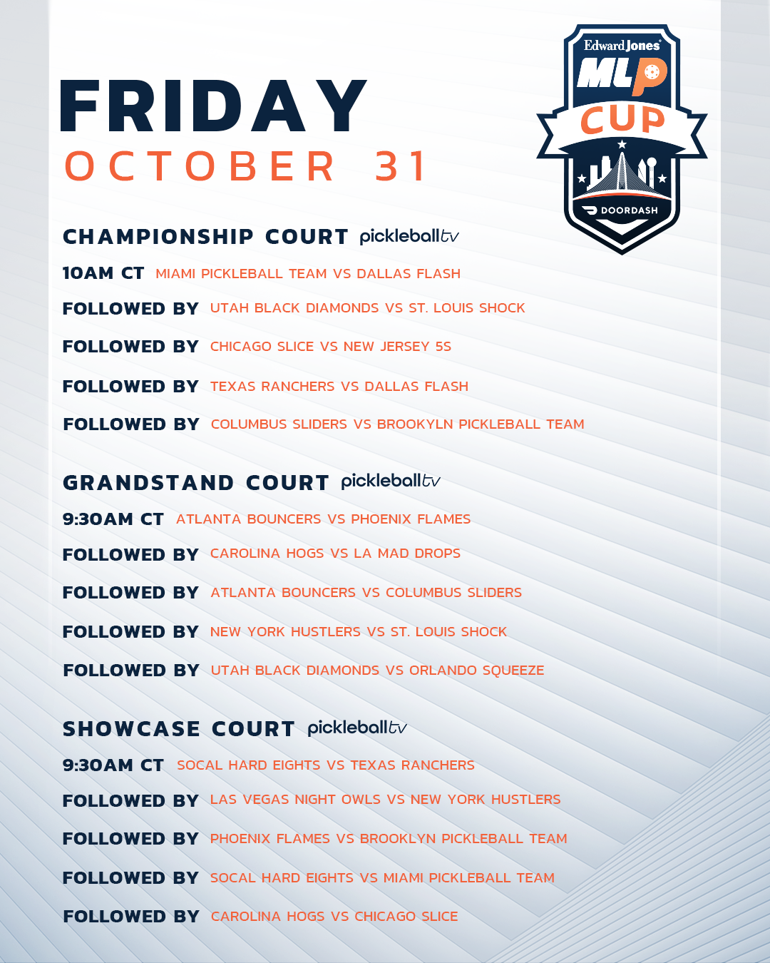 The 2025 Edward Jones MLP Cup presented by DoorDash opens the nine-day pickleball celebration that is the Jenius Bank Pickleball World Championships, running October 31–November 9.