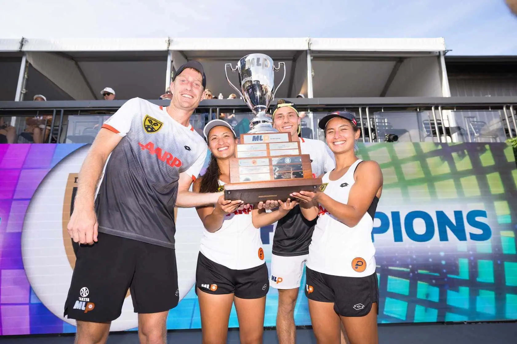 D.C. Pickleball Team came into game 3 with a hunger to avoid a repeat of Atlanta. Orlando’s Bright and D.C.’s Newman had a visible rivalry in this game. An incredible hands battle broke out between Newman and Daescu at 4-3, with Orlando Squeeze coming out on top and earning a standing ovation from the crowd. Riley Newman continued to put the heat on the Squeeze, but the consistent defense from Bright and Daescu kept them competitive, only trailing behind by one point or tied in the first half of the game. A forehand volley from Daescu at 10-10 clipped the back of the baseline and gave the Squeeze an 11-10 lead at the end change. The crowd remained rowdy throughout the entire time-out, with loud cheers for the Orlando Squeeze who hoped to bring on another game. Riley Newman remained aggressive, but his accuracy fell short, bringing the D.C. Pickleball Team to a 10-14 deficit. D.C. fought back to get within one point at 15-16, prompting a defensive timeout response from Orlando. At 18-17, Andrei hit an attack that got behind Riley Newman who was committed to the middle, bringing the score to 19-17, igniting a “Let’s Go Squeeze” chant from the crowd. At 20-19, the Squeeze had game point, but a Newman bodybag on Bright, brought the match to 20-20. D.C. had match point soon after at 21-20, but Newman’s attack soared long from Newman once again evened the score to 21-21. An Erne from Jade Kawamoto at 22-22 once again gave D.C. match point and an attack from Newman sealed the match and MLP Premier Level Championship title for the D.C. Pickleball Team!