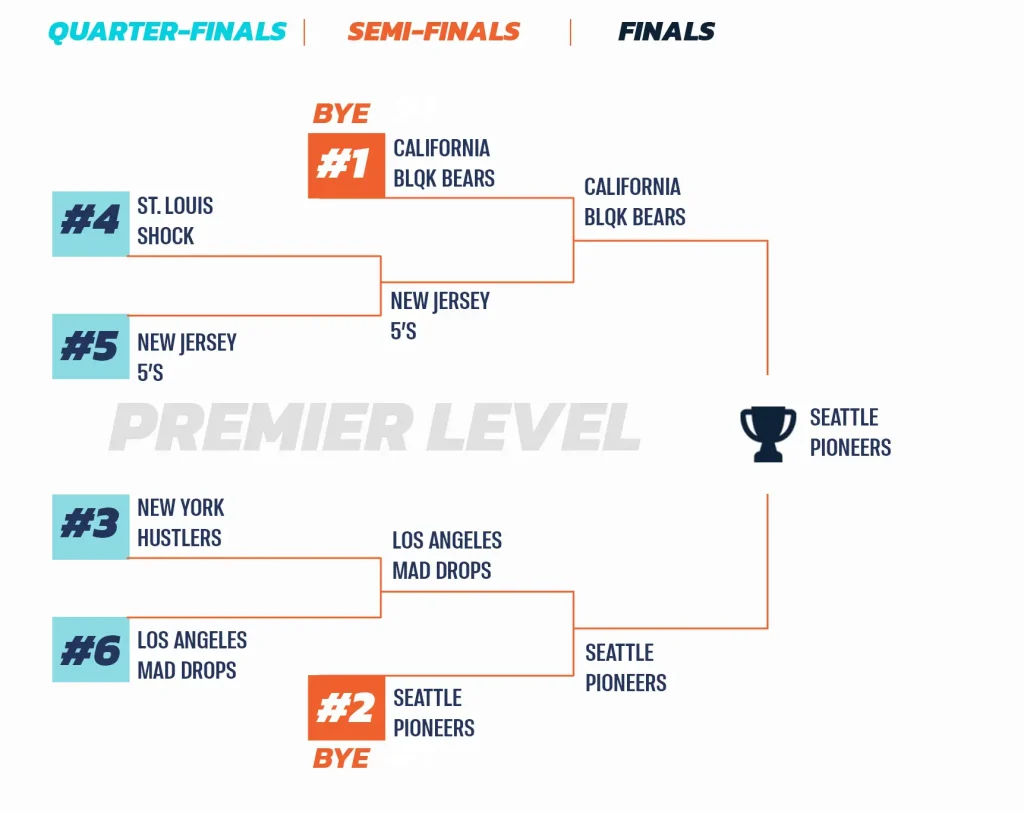 Welcome to your Sunday feed!! Nothing like waking up to the fresh smell of the Mad Drops taking on the Seattle Pioneers to start your Sunday! First up at 9 AM is the Los Angeles Mad Drops up against the Seattle Pioneers and then the California BLQK Bears square off with the New Jersey 5’s with only two teams standing for a spot in the finals!