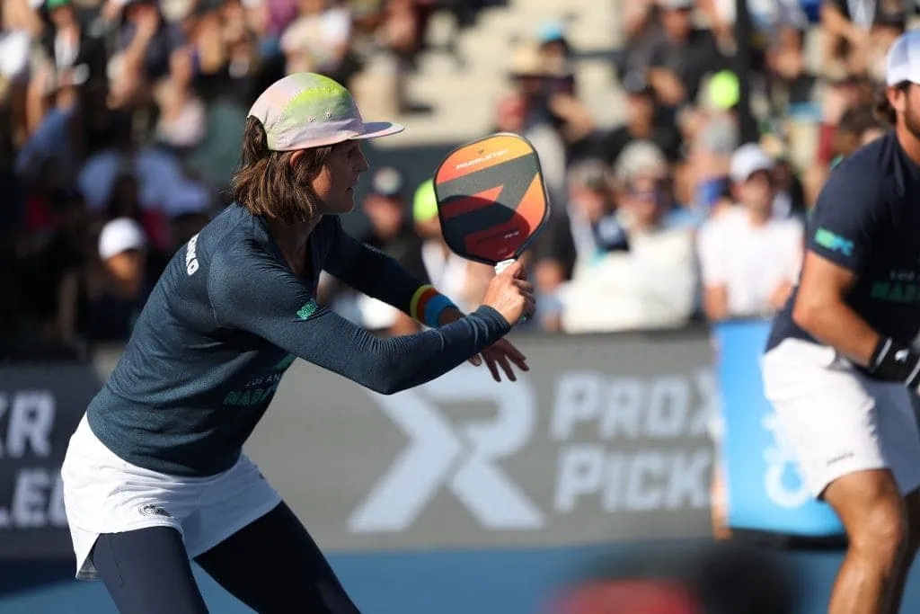 Anna Leigh Waters(ALW) and Patriquin combined forces to secure a triumphant 3-1 match victory for the 5s by dominating the second mixed doubles game. The dynamic Gen-Z duo left no doubt with their commanding performance. An explosive ALW speed up caught Parenteau off guard, propelling the 5s to an early 4-3 lead. The Jersey team extended their advantage to 8-4 after Patriquin executed a precisely-placed dink that proved too challenging for the LA Mad Drops to handle. ALW continued to shine, unleashing a powerful forehand attack volley to push the lead to 9-4. Patriquin showcased incredible finesse, executing multiple resets before sealing the point with a backhand overhead winner, stretching the lead to 11-4 at the end-change. Patriquin’s exceptional hand skills were on full display as he consistently neutralized the Mad Drops’ attacks, resulting in a commanding 13-5 lead for the 5s. Despite a comeback attempt by the LA Mad Drops, with Parenteau’s well-timed ATP narrowing the deficit to 13-8 and Arnold winning a fierce battle to make it 13-9, the 5s called a timeout to halt their momentum. The strategic timeout allowed the Jersey team to regain composure and regain control of the game. A surprise speed-up by Patriquin propelled the score to 17-10. Julian Arnold then hit a remarkable backhand flip, cutting LA’s deficit to 19-12. However, it was Jersey who secured the remaining points, including a lightning-fast ALW forehand speed up that sealed the game in their favor. With their dominant performance, Waters and Patriquin propelled the 5s to a resounding victory, leaving the Mad Drops in their wake.
