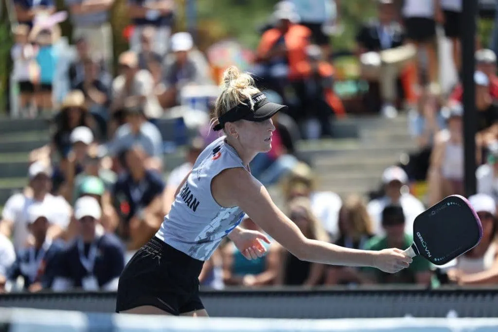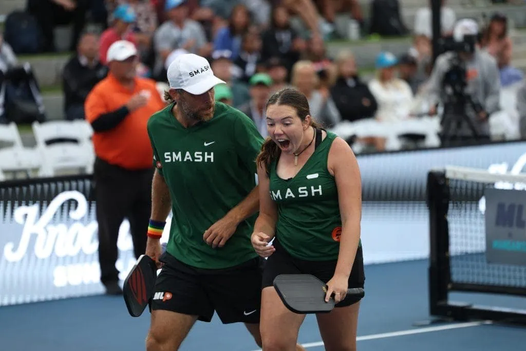 Kovalova and Wright showed why they are one of the top mixed doubles teams in pickleball, leading the Milwaukee Mashers to a well-deserved win in the first mixed double game. The excitement began early on when Tyson McGuffin of the Hustlers concluded a captivating rally with a remarkable backhand volley, igniting the crowd’s enthusiasm. Not to be outdone, Wright showcased his defensive skills by countering McGuffin’s overhead shot with a winning volley, propelling the Mashers to a 12-9 lead. Building upon their momentum, Milwaukee expanded their advantage to 16-10, prompting New York to call a timeout in an attempt to shift the momentum. The game reached its climax with a spectacular rally, where Wright and Kovalova exhibited exceptional agility, defending against multiple overhead shots and displaying their nimble hands. Although McGuffin’s Erne attempt was called for a foot fault, the crowd erupted in appreciation for the tremendous effort exhibited by both teams.