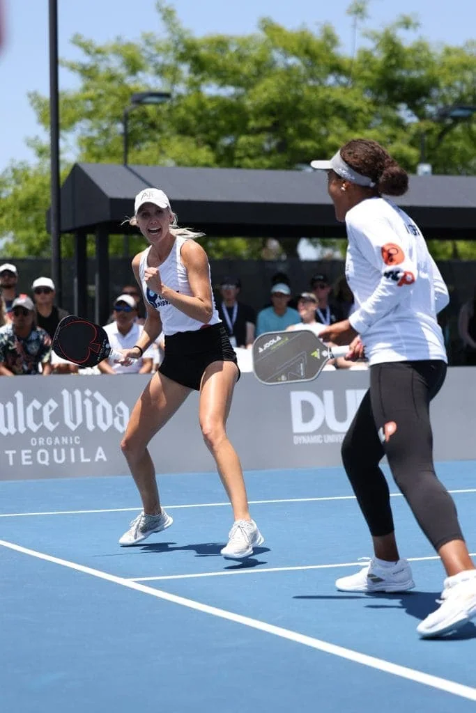 With the Mad Drops leading 20-15, ALW delivered back-to-back backhand volley winners, reducing the deficit for the 5s to 20-17. Nevertheless, LA regrouped, rebounded, and ultimately sealed the game in their favor. The LA Mad Drops emerged triumphant with a final score of 21-17 in the women’s doubles.