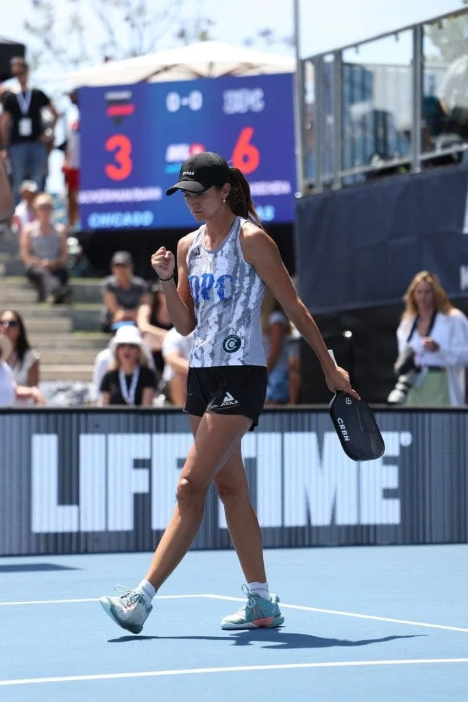 Dallas Pickleball Club triumphed over the Chicago Slice with a score of 21-16. Gecheva and Braverman set the tone for Dallas with a strong start, securing the women’s doubles point. Gecheva displayed incredible defensive skills, while Braverman added pressure on Chicago with her aggressive playstyle.