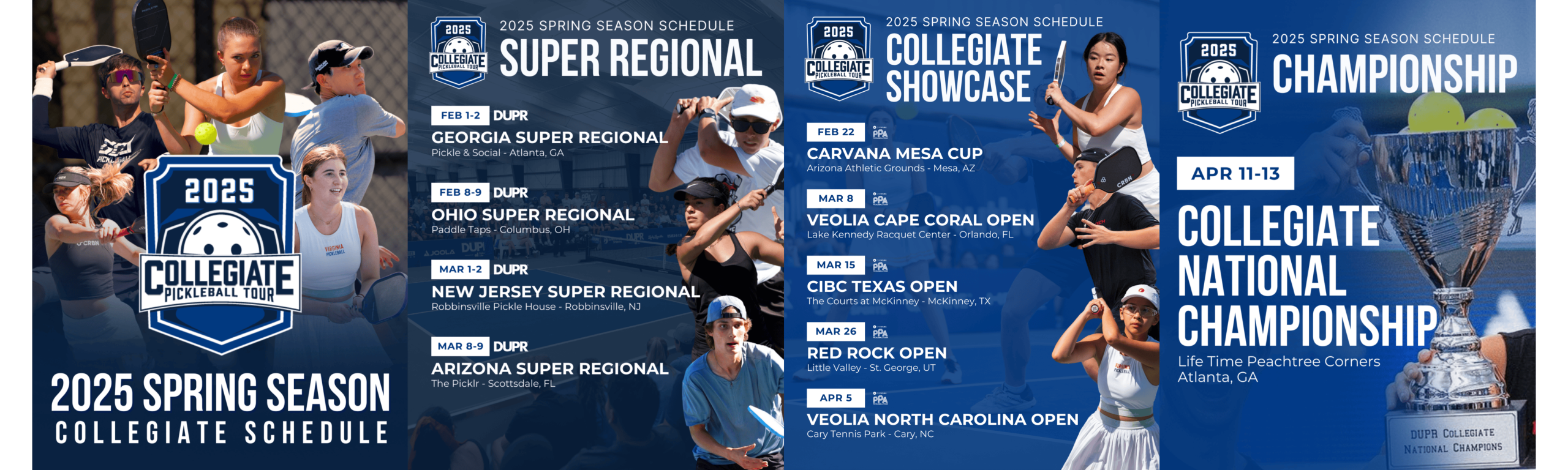 “The Collegiate Pickleball Tour represents a historic milestone for the sport at the college level. Over the past few years, we’ve seen an incredible surge in interest, with thousands of athletes and hundreds of schools joining the movement,” said Jacob Smith, DUPR’s Director of Collegiate Pickleball. “This tour is designed to give collegiate athletes more opportunities to compete at the highest level, showcase their talent on a national stage, and provide crucial funding to support and grow their programs. With the backing of DUPR and the UPA, we are committed to making collegiate pickleball a premier pathway for young athletes to pursue their passion and take the sport to new heights.”